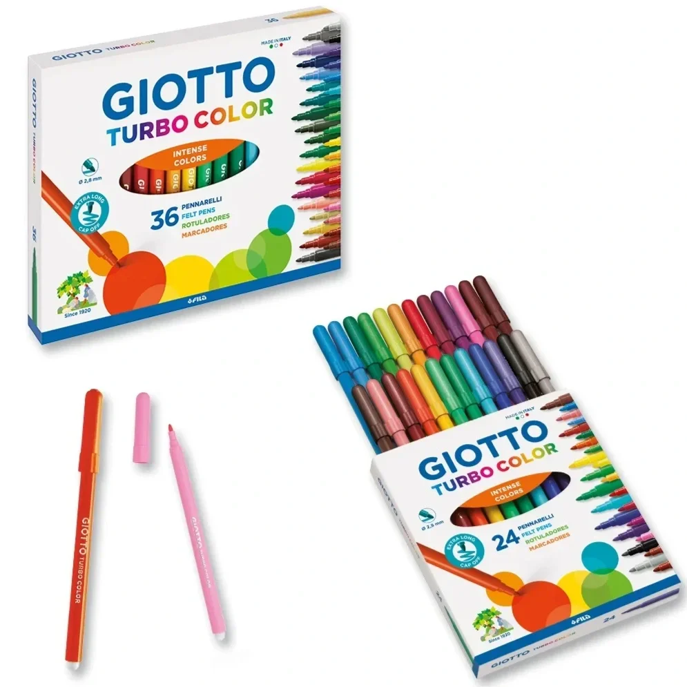 Over the decades, Giotto has broadened its product range to meet the evolving needs of young artists. Today, the brand offers a complete suite of creative tools, including crayons, coloured pencils, markers, felt-tip pens, watercolours, tempera paints, chalks, modelling clay, and accessories for craft and school projects. Specialised lines for toddlers and early learners ensure that children of all ages can explore creativity in a safe and engaging way.